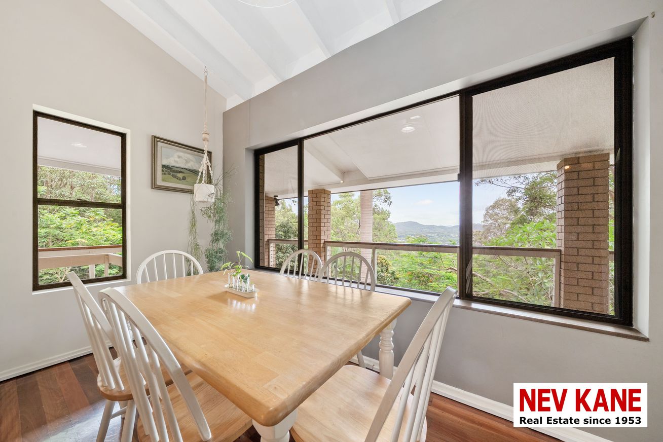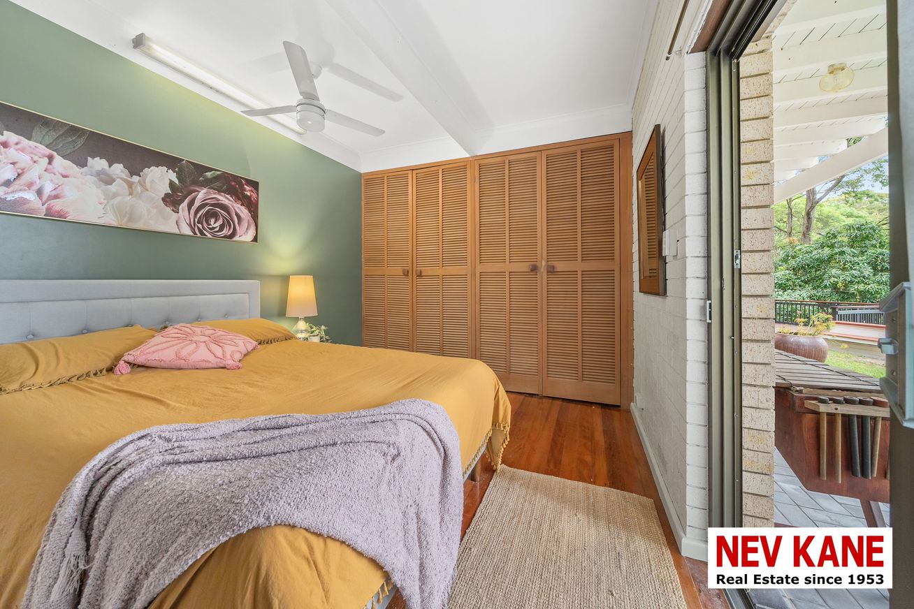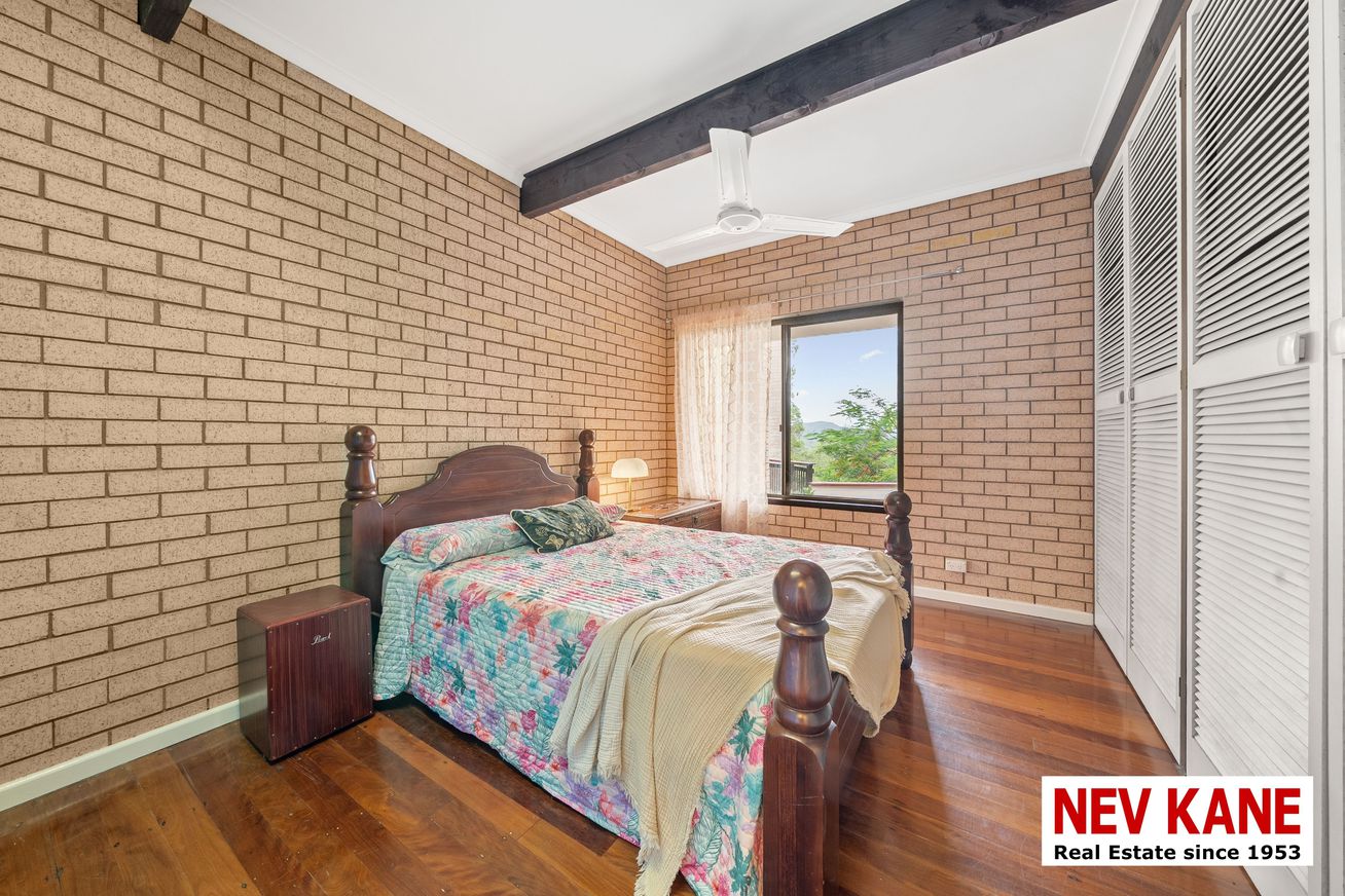 This private, secluded 1.36-hectare (3.3-acre) property offers a lush rainforest vibe with stunning northern views. Perched high on a hill above Nambour, this 5-bedroom plus study, 3-bath home is truly a “home among the gum trees,” complete with resident rock wallabies and a seasonal creek.