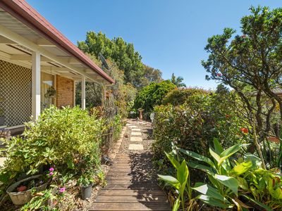 As you walk through the open lounge area, you open the sliding doors onto the covered main timber deck that has an easterly outlook. Looking over the horizon, as far you can see is natural bushland and coastal views in the distance.